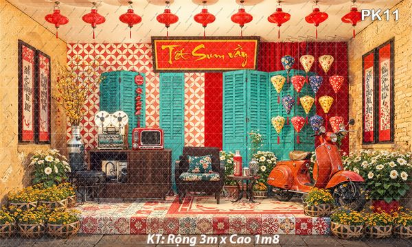 Trang trí tiểu cảnh tết với Phông tết kích thước trung bình.